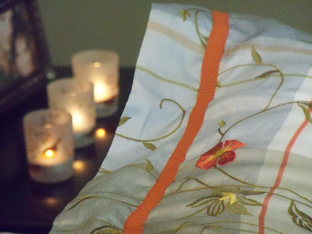Project mode big time over here at Debbiedoos!!~ It takes me a solid week or longer just to do a few room Fall changes. I bought this comforter set Better Homes and Gardens with the intentions of using it for Fall. Now some may say or think it is more Spring and Summer, however I really liked the colors and knew I could warm it up by adding chocolate browns. My room was in disaster mode when I started this project yesterday. I think I am finally finished. I needed one more final touch, and I thought of it today, came home did my mini project and added to it. I realize my taste may not suit everyone's liking...it is not intended too really. It is to inspire you to think outside the box, with accessories, colors and style.